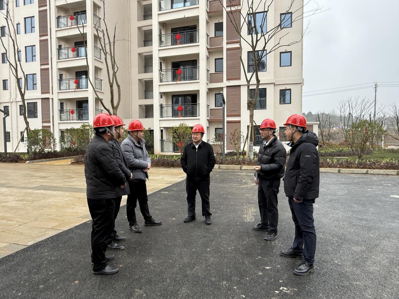 张德顺强调,贵安新区房建项目作为贵安新区管委会移民安置的重点民生工程,承载着保障群众安居乐业的重要使命,必须高标准、严要求推进建设。一是要严格落实安全生产责任制,强化隐患排查与防治,确保施工全过程安全可控;二是要坚守民生工程初心,以质量为核心抓手,严把材料关、工艺关,打造群众满意的精品安居工程;三是要强化项目精细化管理,优化资源配置,完善风险防控机制,全面提升综合管理效能;四是要严格执行农民工实名制管理,保障工资按时足额发放,切实维护农民工合法权益;五是要树立国企担当标杆,以优质工程展现企业形象,为新区安置工作提供示范样板,助力提升集团社会美誉度;六是要紧抓党风廉政建设,全面落实中央八项规定,从思想上固本培元,增强拒腐防变能力。