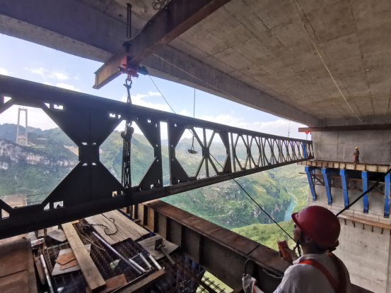 穿过长廊,镜头转向峡谷深处——625米高空,花江峡谷大桥的钢索如银链横跨天际。这座全长2890米、主跨1420米的“新世界第一高桥”,从开工起就面临陡峭地形、复杂地质的“双重考验”。