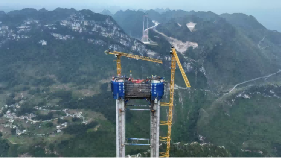 “创新不是凭空想象,是党员带着大家在工地上‘泡’出来的。”技术负责人指着智能温控系统的显示屏说,这项技术让主塔承台混凝土温差控制在25℃以内,为超高空施工提供了“贵州方案”。