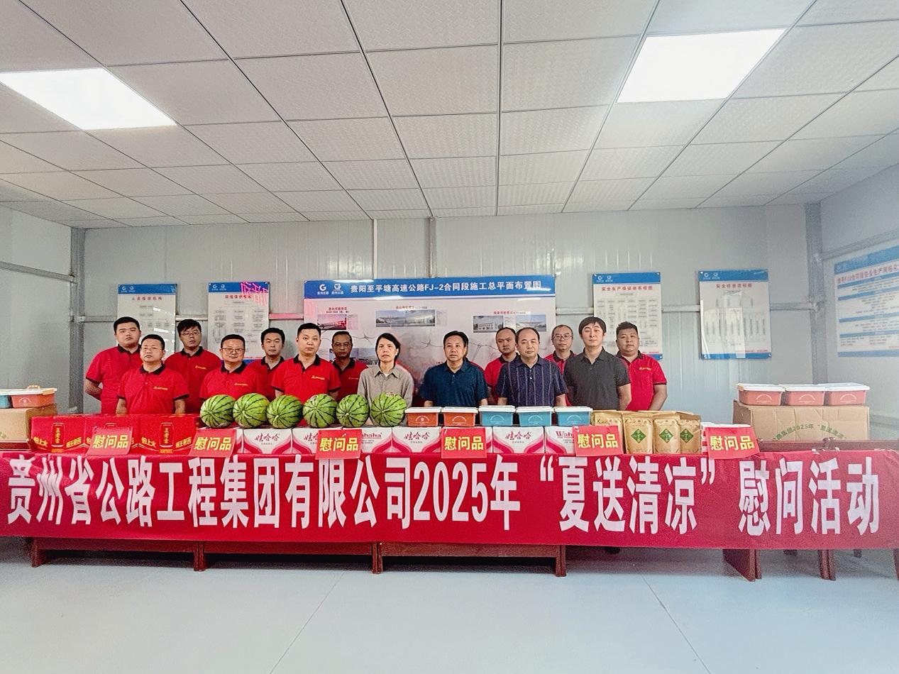 入夏以来,全国多地持续高温,贵州公路集团各在建项目面临“烤”验。为切实做好夏季防暑降温工作,保障一线职工身心健康,7月以来,集团公司领导班子成员分赴云南、湖北、重庆、贵州等地的重点项目,开展2025年“夏送清凉”慰问活动。