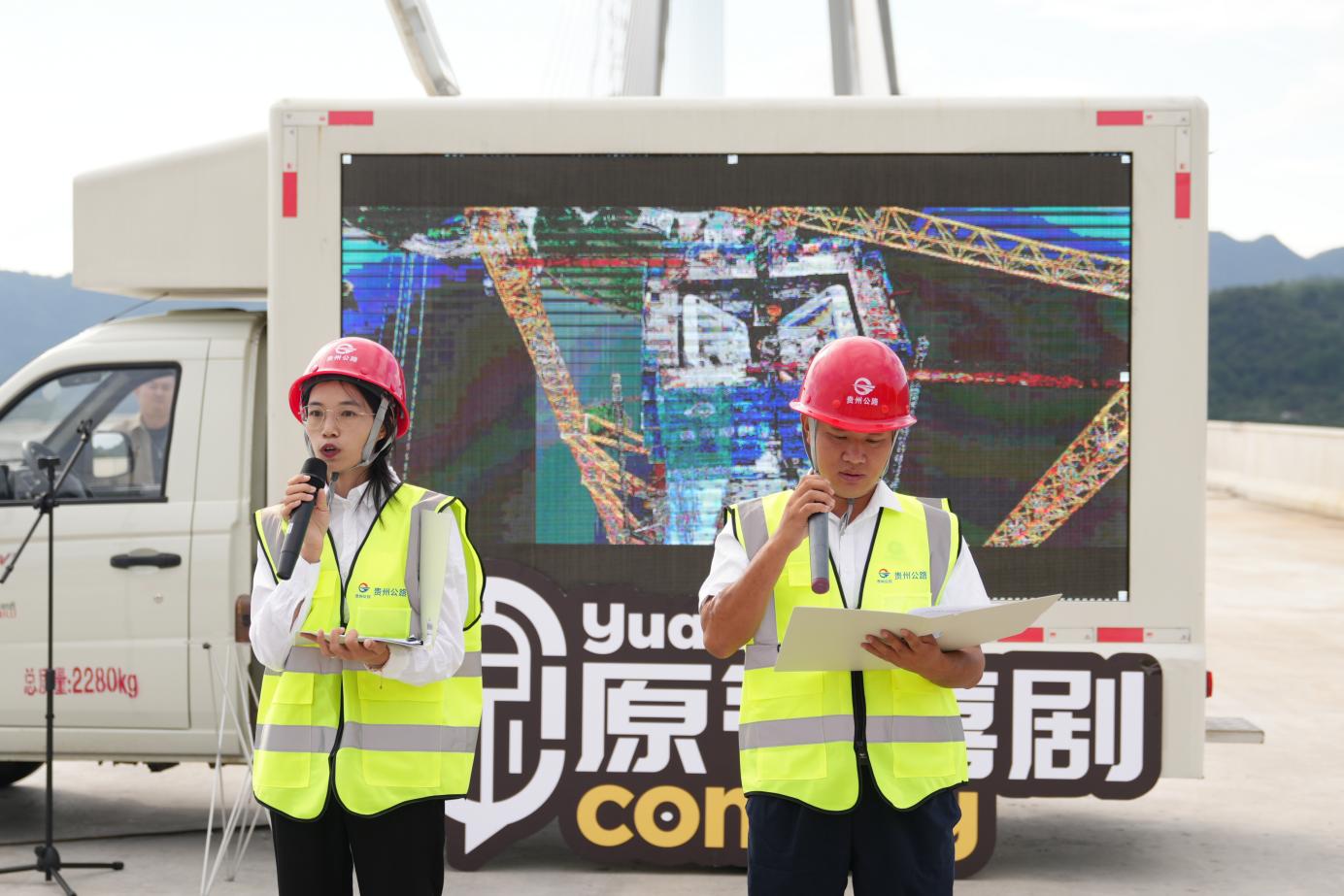 演出现场,刚合龙的大桥下彩旗飘扬,职工们围坐在一起,脸上洋溢着欢乐的笑容。第三工程公司青年职工自编自演的“青年二人讲”,以“桥”见贵州,“路”遇美好为题,通过桥梁建设者李明和工地新人汪杰的成长对话,演绎了贵州交通建设的艰辛与辉煌,句句贴近施工日常,引得现场职工频频点头共鸣。