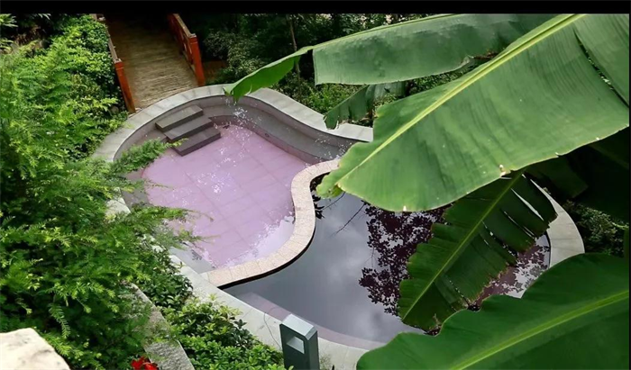 温泉区为临江退台式结构,共有3个平台,平台之间以环形道路联通,每个平台每个泡池均能欣赏秀丽峡谷风光。共有形态、大小、水温各异的特色室外泡池40余个。