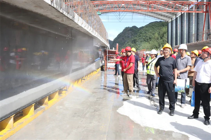 当天,威彝项目观摩团队先后“打卡”了贵平13标3#T梁预制场、小河坝大桥、曹渡河特大桥等施工现场,通过展板展示、动画演示、实地考察、交流问答等方式,详细了解了贵平13标项目预制场规划布局、标准化建设、材料管理、工艺流程、技术创新、质量和安全控制等方面的具体做法和管理经验。