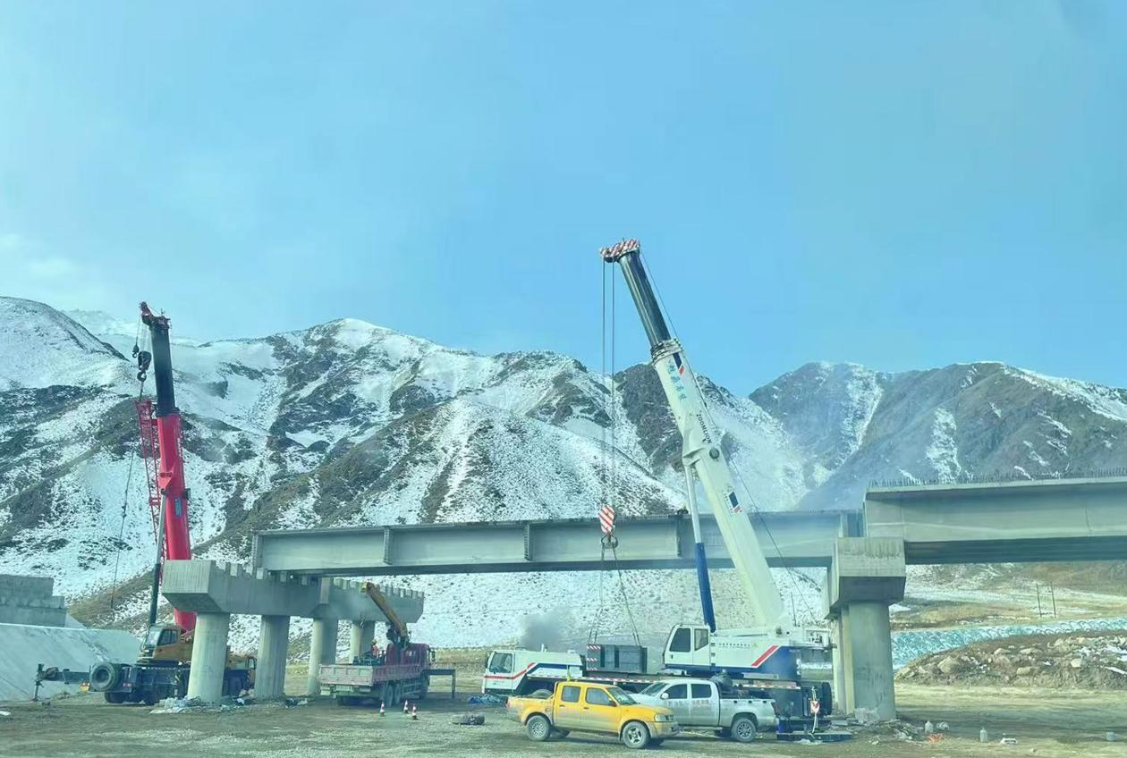 包格旦互通设有5条匝道,其中E匝道与主线相交,该处设置3×30米跨线桥,包格旦互通共需架设30米T梁36片。为抢抓有效施工时间,项目科学编制施工方案,对相关人员进行安全和技术培训交底,确保从T梁预制、起运、吊装到架设每一个环节的安全质量整体可控,确保项目T梁架设顺利完成。