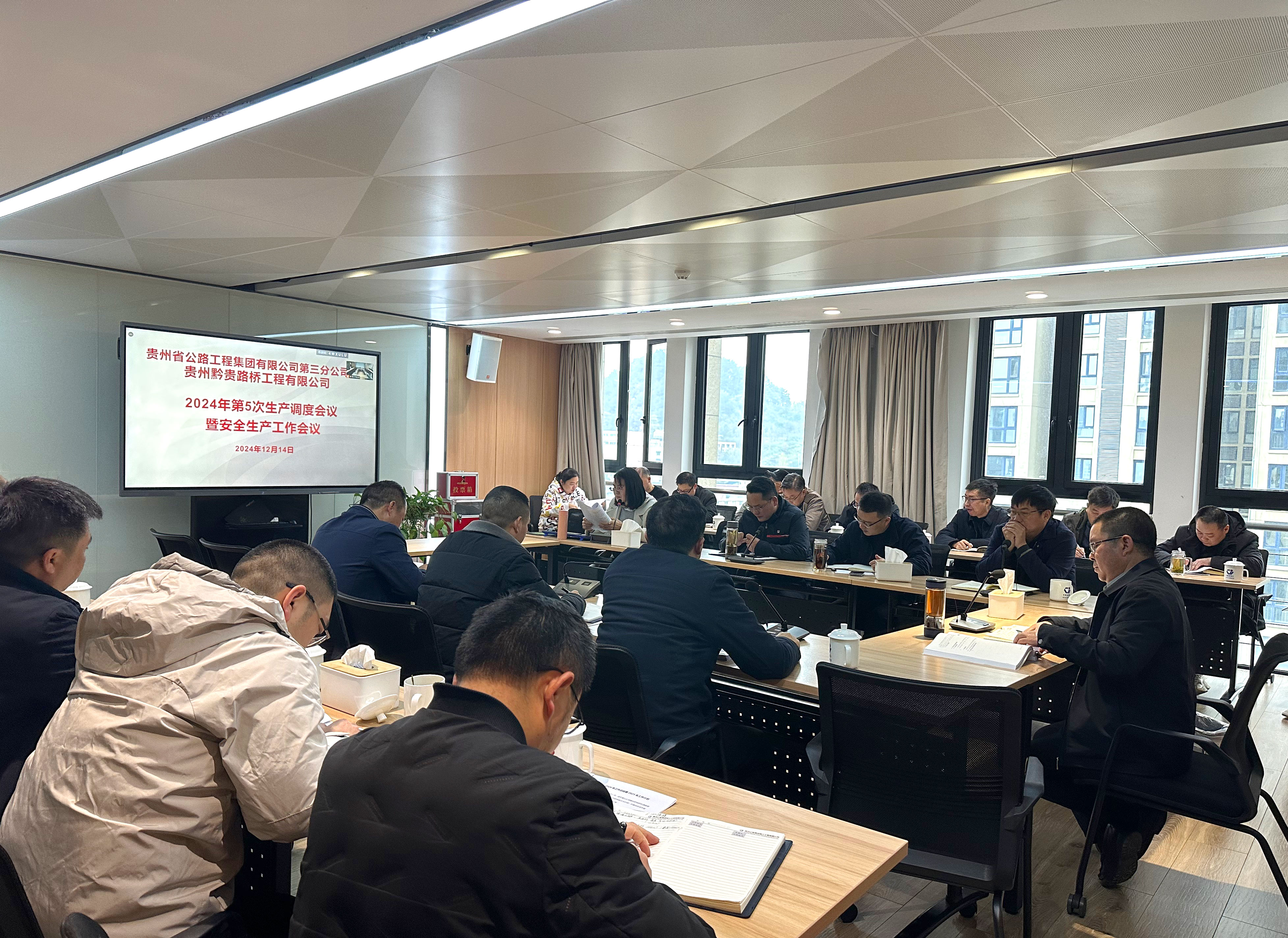 近日,贵州公路集团第三工程公司暨黔贵路桥召开2024年第五次生产调度会暨安全生产工作会,对9月-12月的工作开展情况进行总结,并对2025年第一季度重点工作进行安排部署。