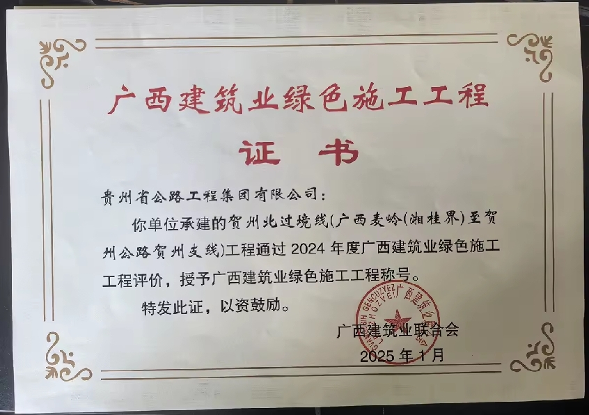 近日,广西建筑物联合会公布了2024年第二批广西建设优质结构工程以及2024年广西建筑业绿色施工工程名单,由贵州公路集团第六工程公司承建的广西贺州北过境线第2合同段(简称“贺州2标”)凭借良好的施工质量与绿色环保举措,成功入选。