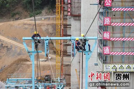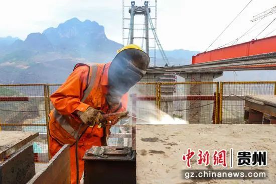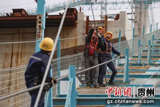 5月1日,正值“五一”国际劳动节,在由贵州公路集团承建的贵州纳(纳雍)晴(晴隆)高速公路重点控制性工程——牂牁江大桥15标建设项目上,各个工种的工人坚守岗位、抢抓工期建设大桥,以确保大桥能够如期通车。牂牁江大桥全长1849米,主跨长度1080米,是一座钢桁梁悬索桥。