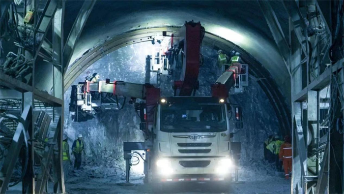 根据施工实际情况,蔡家梁子特长隧道出口选用五新三榀拱架预制分段拼装方案。隧道洞外预制拱架,可大幅减少施工人员洞内作业时间;工人作业时处于钢筋网片下,大幅度降低了人员安全风险;一台设备只需3人即可作业,相比人工安装可节省人力投入3—4人;三榀拱架安装仅需45分钟,施工效率得到大幅提升;汽车底盘机动灵活高效,一台设备可兼顾多个掌子面施工,还可用于凿岩爆破装药,大幅提升隧道立拱效率,加快工序循环。
