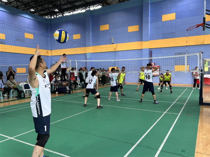 第二局比赛,设备物资公司代表队迅速调整心态和战术,积极应战。16号球员在进攻时表现神勇,以短平快球连续得分,全队随之信心大增,渐入佳境。最终凭借默契配合斩获本局胜利,扳回一城,比分达到1:1。