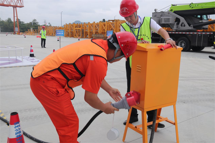 本次比赛采用理论+实操的方式进行,理论考试检验了参赛选手对新能源汽车起重机使用规则的了解程度。