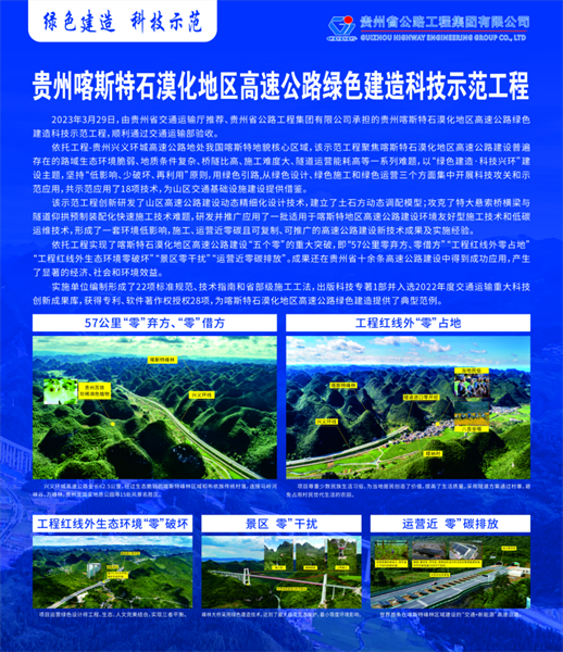 近零碳隧道、光伏凉棚、“光储充”一体化……作为绿色建造科技示范工程,贵州兴义环城高速公路项目全长62.5公里,全线设桥梁64座、隧道26座,桥隧比为56%,沿线旅游资源丰富,环境敏感点多,且途经石漠化核心区,生态极其脆弱。鉴于工程特点与技术难题,项目提出了以“喀斯特石漠化地区高速公路绿色建造”为示范主题,探索提出一整套“施工、处置、利用”的绿色建造技术,旨在形成一套可复制、可推广的绿色建造工程实践经验。