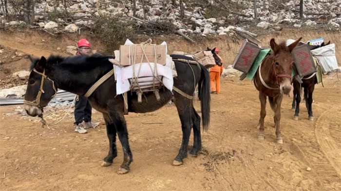 项目部用马、驴等畜力运送材料上山