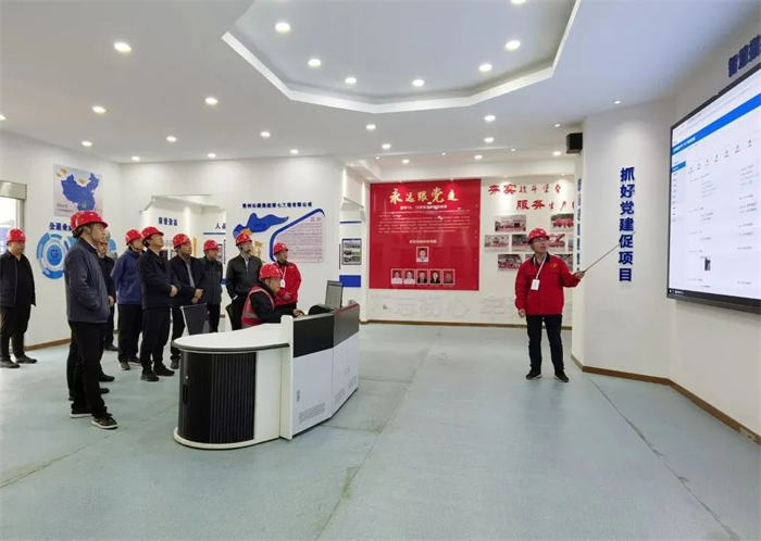 在贵平16标T梁预制场,调研组一行实地查看梁场标准化管理、精细化施工情况,详细了解路基施工、隧道施工、桥梁施工、创新创效等方面工作。在梁场信息中心,听取了信息化监管平台的架构体系、运行情况等情况汇报,深入了解梁场视频接入、安全、进度、质量、BIM等模块的业务办理和数据采集、分析、展示等功能。
