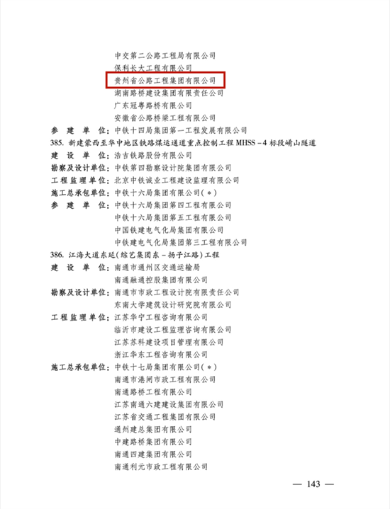 日前,中国施工企业管理协会发布了《关于表彰2022-2023年度国家优质工程奖的决定》,由贵州公路集团第三工程有限公司参建的广东仁新高速项目整体获2022-2023年度国家优质工程奖。截至目前,贵州公路集团已获得国家优质工程奖3项,国家优质工程金奖2项。