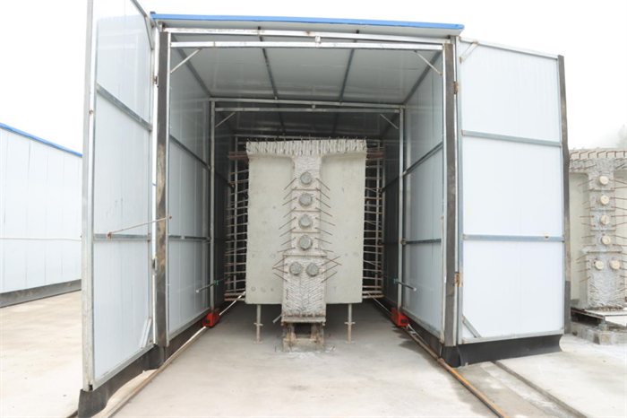 与此同时,项目部在T梁预制场共设置2条T梁蒸养线,每条生产线布设1个移动蒸养房和1套养生蒸汽锅炉,待T梁浇筑完成后进行带膜蒸养,在冬季低温条件下能有助于T梁预制混凝土养生。通过对比试验,在带模蒸养下,当蒸养到达12小时,砼强度与弹性模量均能满足设计要求,比自然养护提前3天到达张拉条件,养护功效显著提升,有效保障了现场施工进度和材料品质。