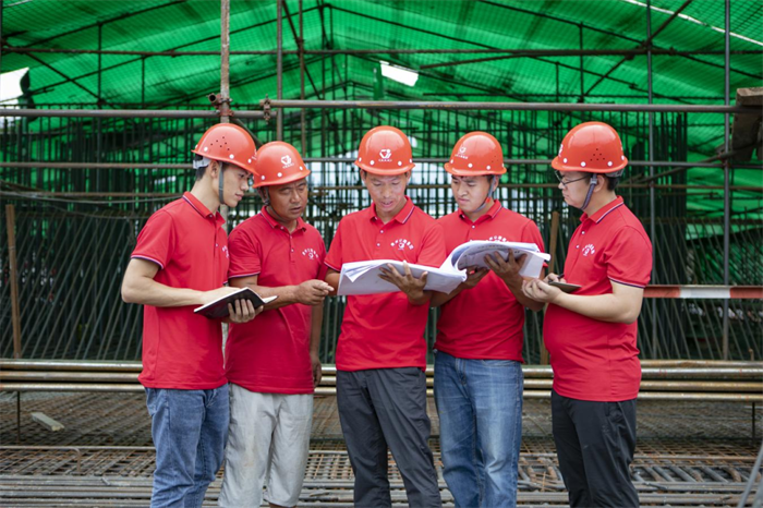 “协拓创新工作室”青年突击队成员讨论施工技术