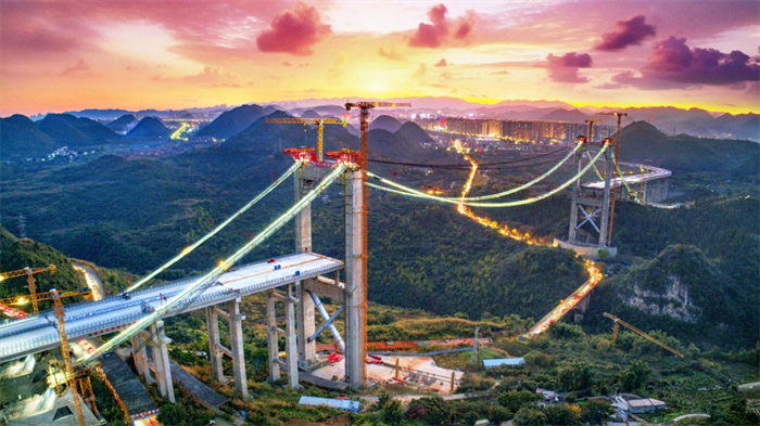 1月2日15时,随着最后一根索股精准就位,由贵州公路集团第六工程有限公司承建的金州大桥项目主缆索股牵引圆满完成,大桥的上构施工取得阶段性胜利。