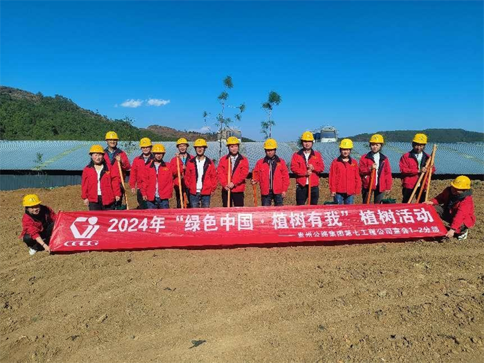 第七工程公司贵平15、16标、武道2标、纳晴9标、宣会1-2分部组织开展植树活动。植树现场,大家分工协作、默契配合,挥锹挖坑、运苗扶苗、栽种填土、踩实浇水,细心用心地栽下一棵棵小树苗,种下春的希望,期待秋的收获。