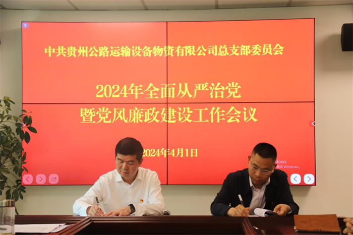 4月1日,贵州公路集团第八工程有限公司召开2024年全面从严治党暨党风廉政建设工作会议。会议学习传达了相关会议精神,集中观看了警示教育片,开展集体约谈,各项目部、本部各部门、各党支部签订了党风廉政建设目标责任书。