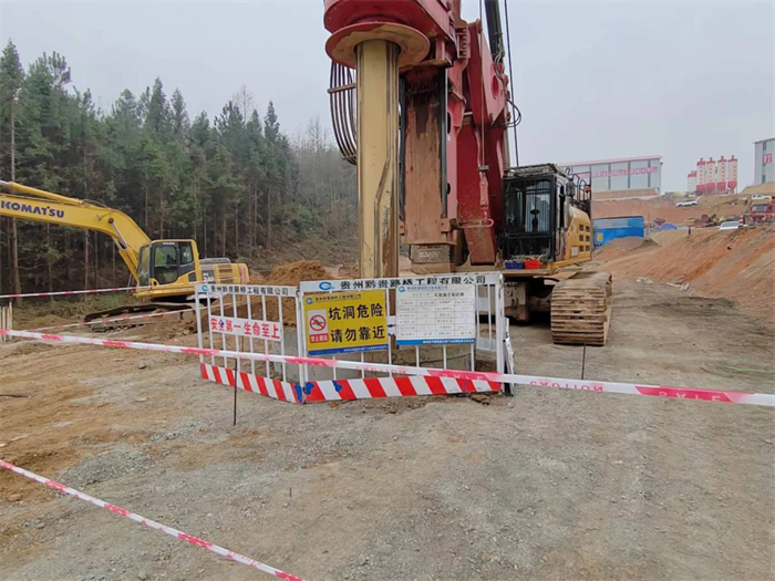 贵平13标全线共有桥梁11座,是一个典型的桥梁标段,桩基有1149根,前期的桩基施工对沿线生态环境影响较大。为了减小桩基施工对周边山体、植被的破坏,项目部始终贯彻“少开挖、少破坏”的理念,在进行桩基施工时严格控制在原地面进行孔桩开孔;项目沿线地段溶洞较多,为了防止桩基施工时产生的泥浆通过溶洞流入下方的漕渡河(漕渡河为二级水源保护区),项目部摒弃了污染较大的冲孔桩,采用人工挖孔桩和旋挖钻孔桩相结合的方式进行施工,最大限度减少破坏、避免污染。