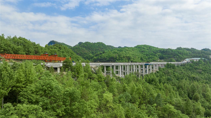 位于贵州平塘县境内的贵平高速13标施工现场,一幅绝美的春日画卷正在徐徐铺开。登高远眺,只见群山延绵不绝,绿树一望无际,春风拂过,绿意涌动;在这幅生机勃勃的画卷中,贵平13标包括漕渡河大桥在内的11座大桥,正就着满山的“绿意”,奋力生长。