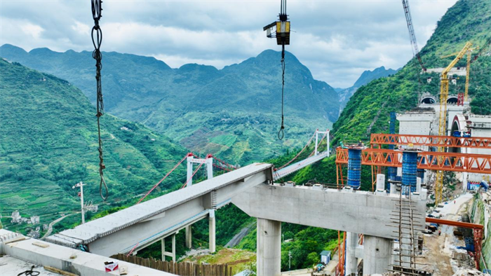 纳晴高速乌蒙山大桥首片预制T梁顺利架设