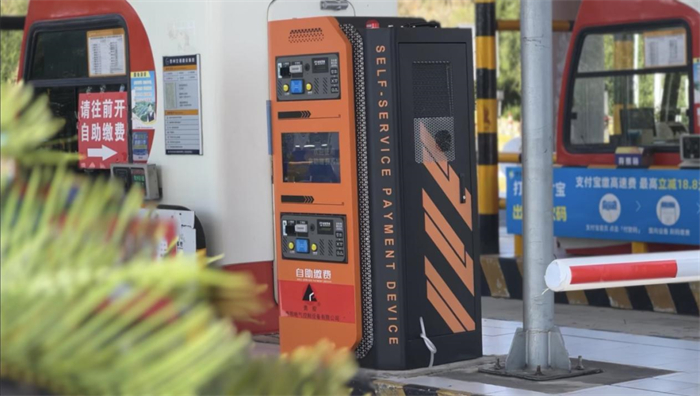 “这个设备挺方便的,我根据指示把车开到机器旁边,把卡投到自动伸出的收卡盘上,几秒钟就完成缴费,比以前更快了。”一位正在驶出收费站的货车车主说道。