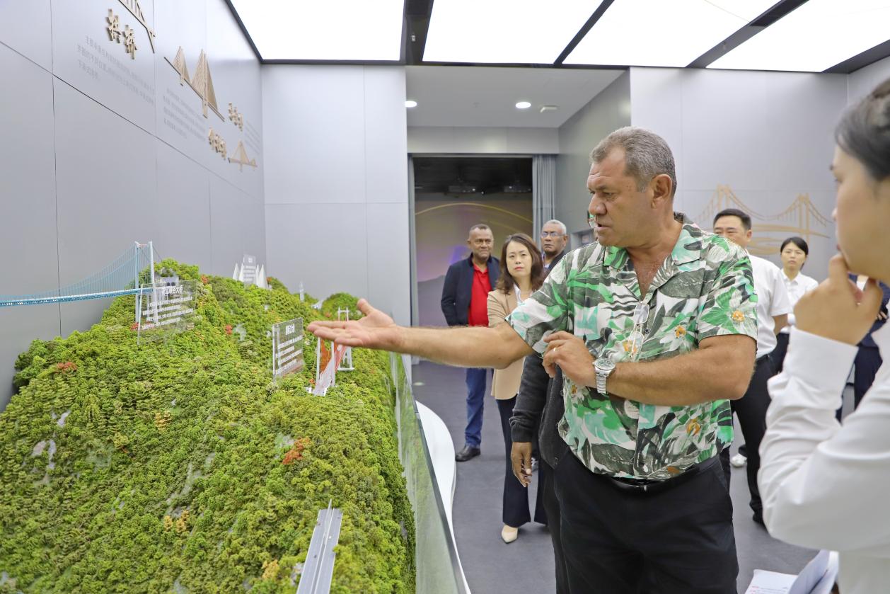 代表团成员在听取了山区桥梁装配化施工技术介绍后表示:“贵州公路集团在桥梁建设方面的实力令人惊叹,难以想象在建设世界第一高桥的过程中建设者们是如何将这么多设备、材料进行运输,建设者们在数百米高空建桥就像拼积木一样,非常了不起。欢迎贵州公路集团把先进的施工技术带到所罗门群岛,积极参与当地交通基础设施建设。”