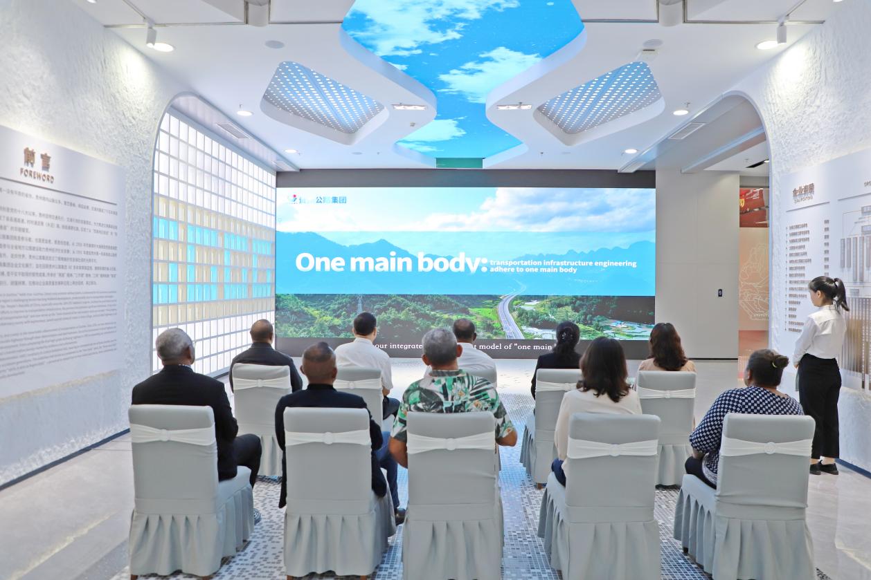 在讲解员的带领下,代表团一行先后参观了贵州公路集团企业文化展厅的精神历程、代表工程、技术创新以及党建文化等展区,通过观看视图资料、展品模型等,全方位了解贵州公路集团的发展历程、企业实力、海外建设项目、桥旅融合、技术创新以及履行社会责任等方面的内容,对贵州公路集团在公路、桥梁、隧道等建设领域取得的成绩留下深刻印象,并高度点赞了贵州公路集团对“公路+新能源”产业和绿色公路建造技术的探索实施。