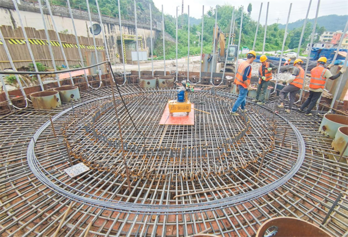 正在安装牵引盘钢筋