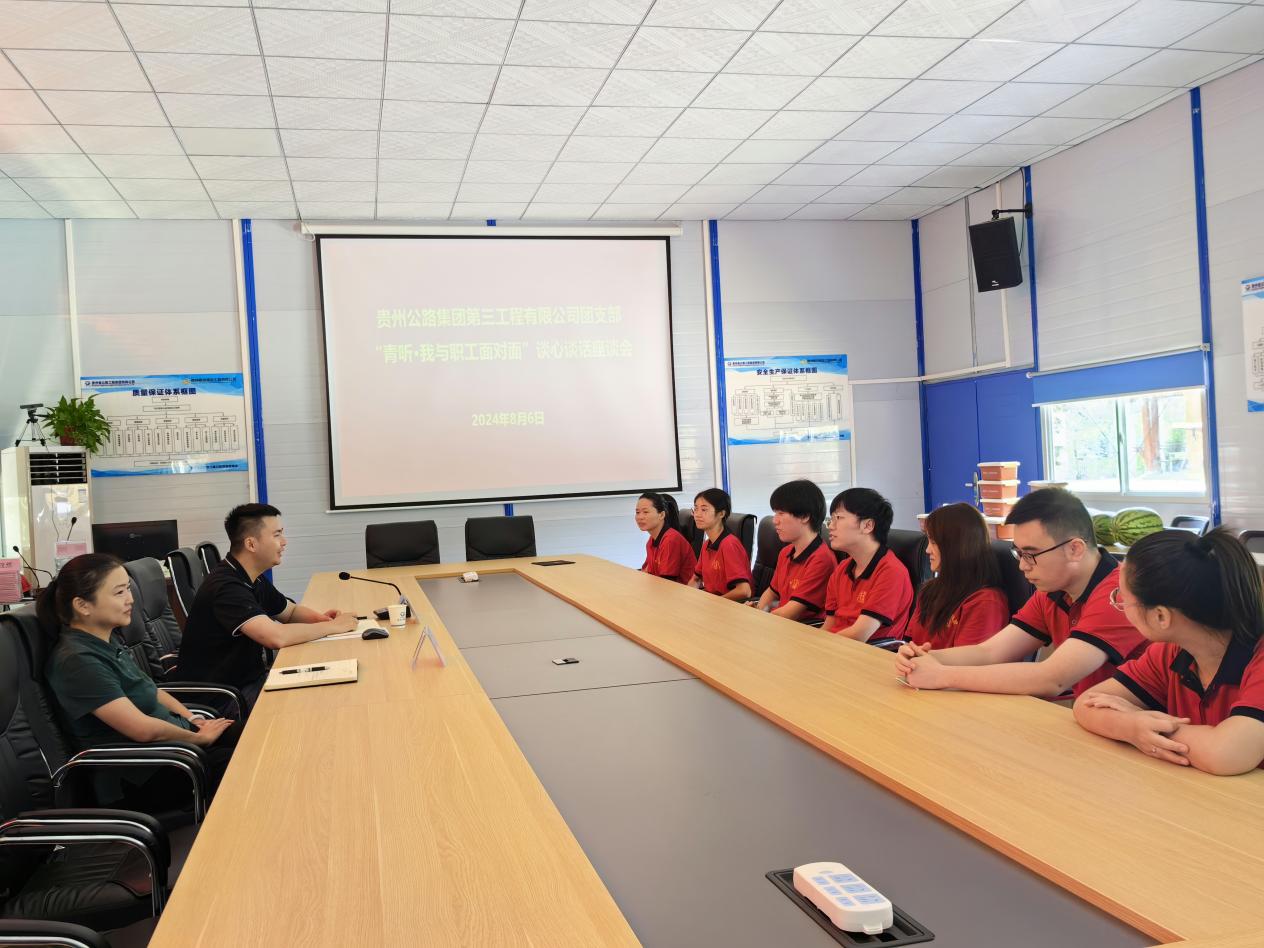 各团支部分头走进贵安扩容3标、那巴9标、纳晴15标、贵平16标、新黔恒物业管理办公区等项目,通过青年服务热线、问卷调查、谈心谈话、心灵信箱、树洞盒子等方式,开设了“情绪树洞”。团员青年们畅所欲言,分享工作、生活、学习等方面的感受和体会,也把烦恼和困惑通通“讲出来”;同时,团组织把一线青年的心声和诉求“听进去”,大家一起把解决问题的办法“想出来”,活动现场松弛感拉满。