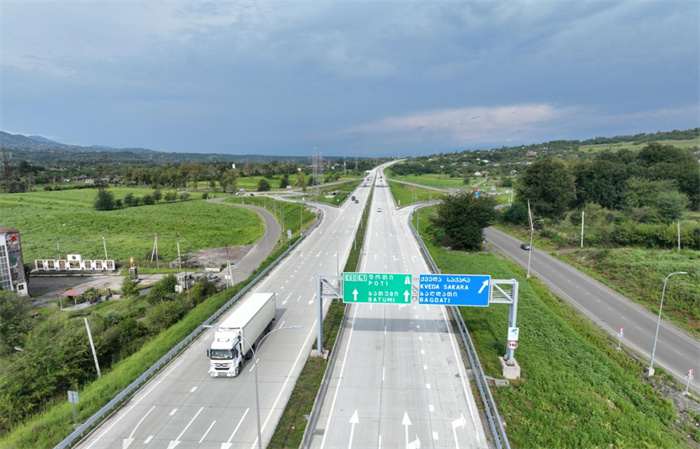 格鲁吉亚当地车辆行驶在E60高速F4标路段