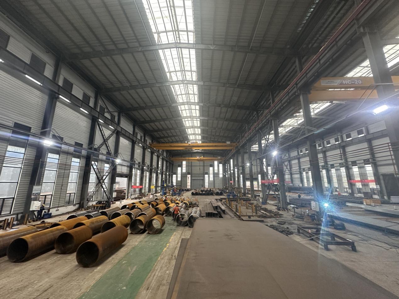 生产过程中,交通产业园引入了多台先进生产设备,包括智能焊接机器人、可视悬臂式埋弧焊机、直径1400mm等离子相贯线切割机等,不仅提高了生产效率,更确保了产品质量的稳定性和可靠性。同时,产业园还注重技术创新和工艺优化,通过不断总结经验,优化生产流程,使得六车河大桥钢管拱的生产得以高效推进。