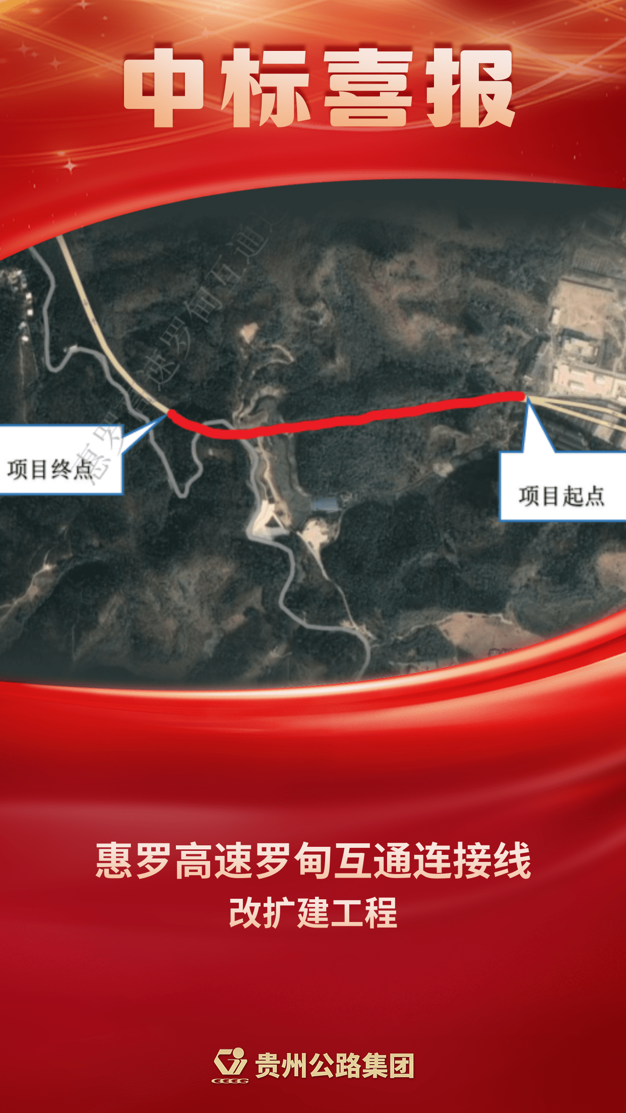 项目以联合体方式中标,以现有的罗甸互通双车道连接线为左幅,在右侧新建连接线为右幅,路线全长1.68km,主要包含惠水至罗甸高速公路罗甸互通连接线路基、路面、隧道、绿化、房建等改扩建工程施工。中标金额约7997万元。
