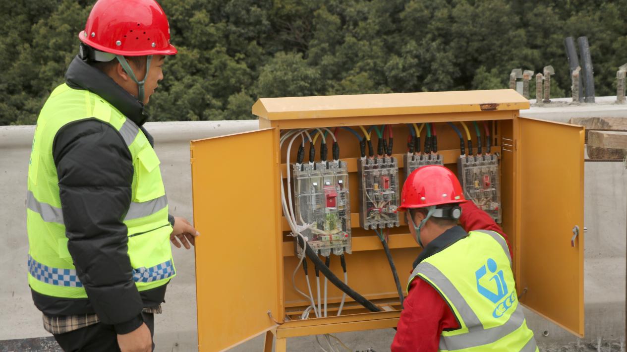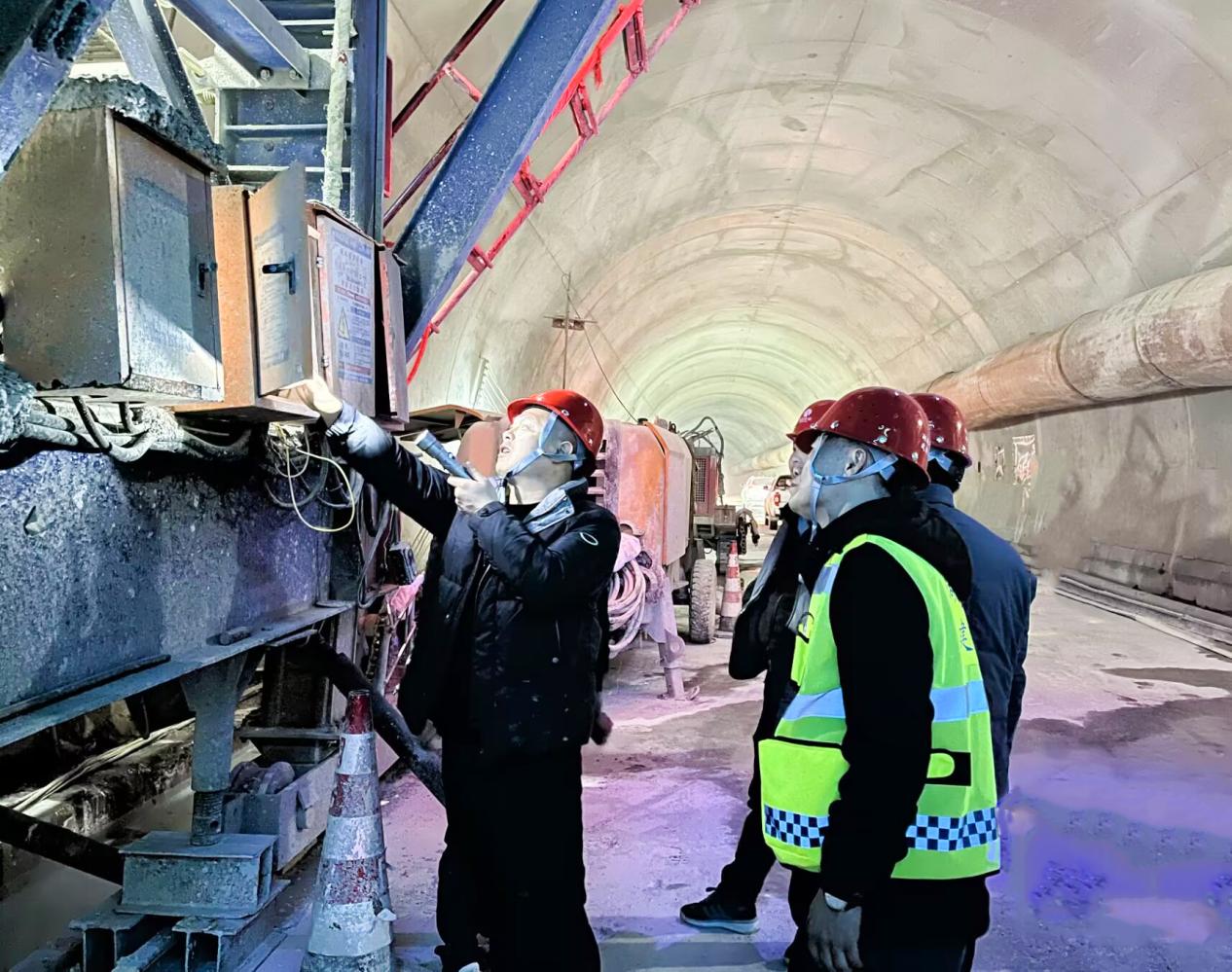 第九工程公司十巫南项目安全管理人员检查隧道安全用电。