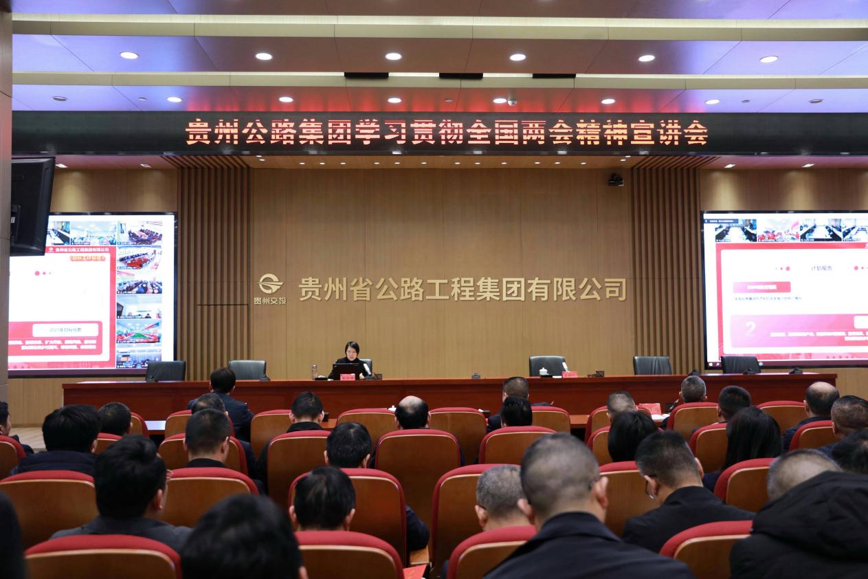 3月18日,贵州公路集团组织召开学习贯彻全国两会精神宣讲会。全国人大代表、贵州公路集团副总经理、总工程师张胜林向全体职工传达习近平总书记重要讲话精神和全国两会精神。集团党委书记、董事长马白虎主持宣讲会。