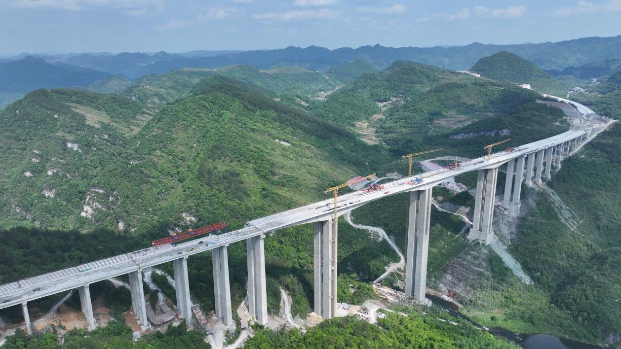据了解,南明河大桥是贵平高速全线重点控制性工程,全长1129.8米,于2023年4月26日开工建设。大桥地处贵阳市乌当区下坝镇岩山村,横跨南明河,设有3个T构,最大主跨180米,最大墩高175米。桥梁上构设有20个标准节段,按照“先边跨合龙、后中跨合龙”的顺序逐步浇筑。截至目前,贵平2标的整体形象进度已达到95.36%,路基、桥梁、隧道工程分别完成90%、97%、100%。