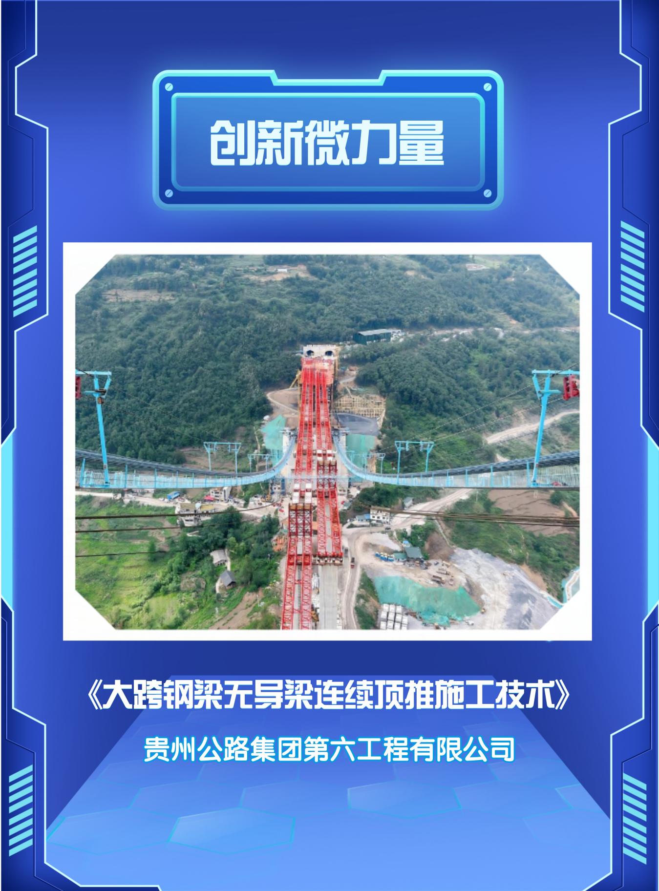 科技创新和产业创新是发展新质生产力的基本路径。贵州公路集团以“工装革命”践行科技创新,用“毫米级”微创新推动安全与效率升级。集团官微推出《创新微力量》专栏,聚焦一线“小装置”,揭秘巧思如何化解行业痛点。本期关注一项获得中国公路学会第五届全国微创新大赛金奖的大跨钢梁无导梁连续顶推施工技术成果,看它如何轻松“拿捏”1900吨钢梁。