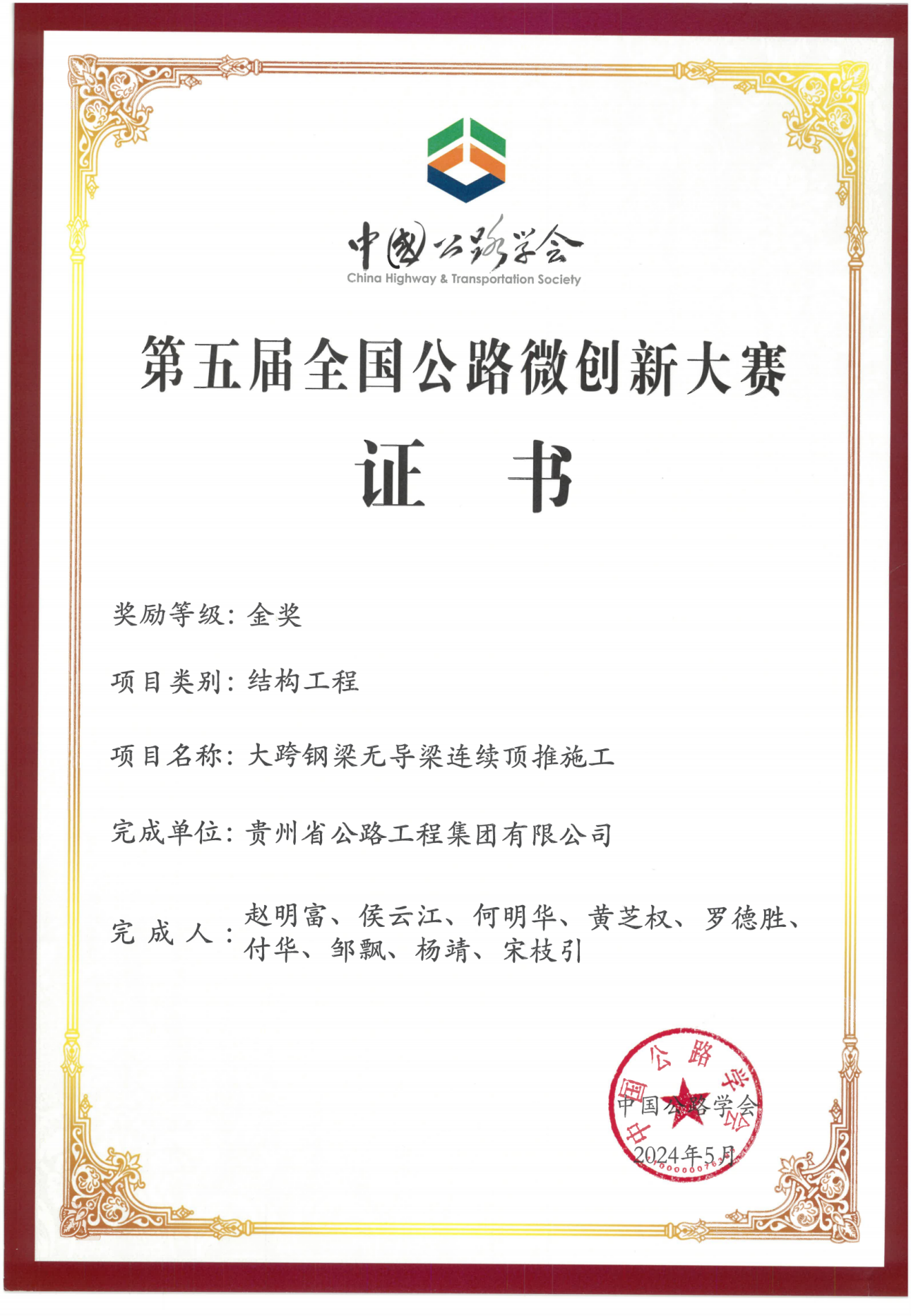 近日,由贵州公路集团第六工程公司纳晴15标研发的“大跨钢梁无导梁连续顶推”施工技术在中国公路学会第五届全国微创新大赛中夺得金奖。该技术依托纳晴高速牂牁江大桥晴隆岸引桥施工,因地制宜采用标准化斜拉扣塔系统、滑道+侧向限位装置、自动化监测系统,轻松“啃下”传统钢梁顶推工艺面临的施工速度慢、安全风险高、钢梁拼装场地受限等难题,为山区大跨径钢梁桥施工提供了一项更为高效、安全、经济、环保的操作手册。