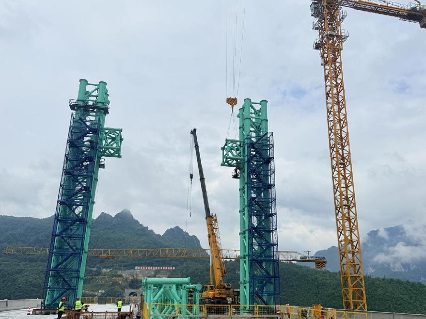 近日,由贵州公路集团第三工程有限公司承建的安盘高速六车河大桥塔架施工有序推进,塔架整体安装完成30米。