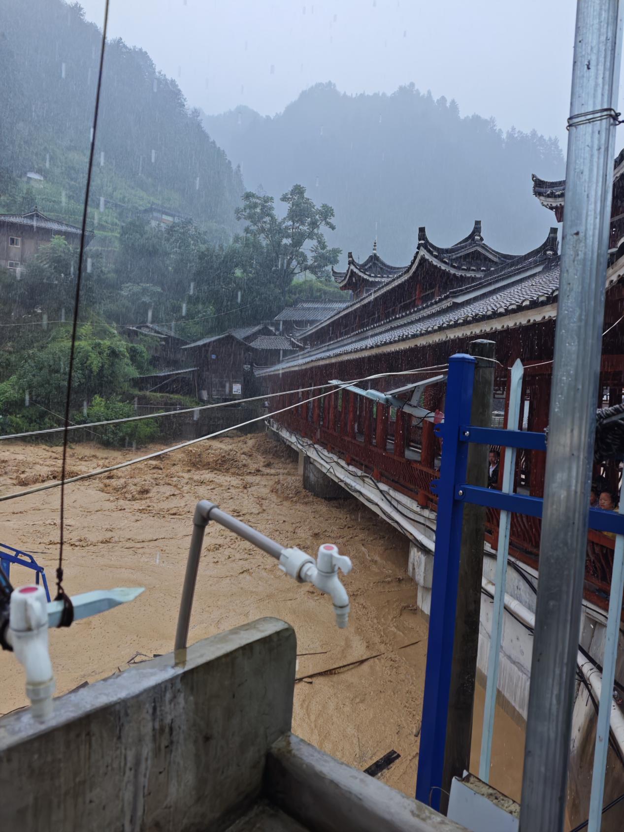 6月28日上午,三都水族自治县都江镇暴雨致打鱼河水位快速上涨,超24日最高值。G321改扩建工程沿线山体多处塌方,刚抢通的县城通道再断,水位急升淹没低处房屋路段,甚至漫过学校教学楼三层,打鱼村再成“孤岛”。三都2标项目部立即启动应急预案,组织项目人员有序撤离至安全地带。