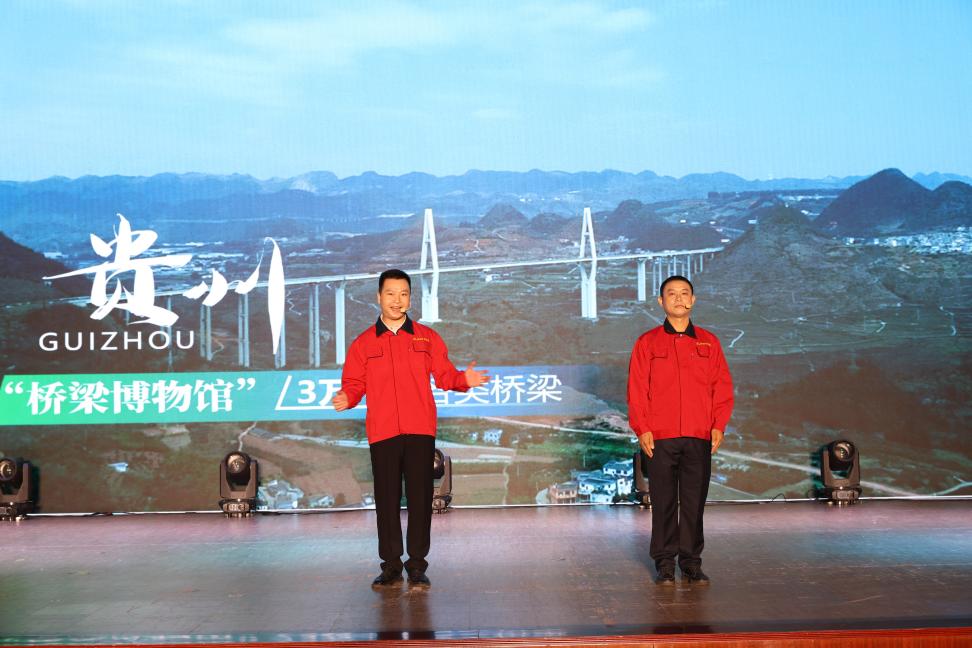 《华哥桥哥说牂牁 云端架桥越山河》故事作品,取材于贵州公路集团第六工程有限公司承建的首座“纯贵州造”世界级悬索桥——牂牁江大桥创新攻坚、克难奋进的建设事迹。宣讲创新采用“理论宣传二人讲”模式,由大桥建设团队的理论宣讲员“华哥”与先进榜样“桥哥”结对,组建“1+1”宣讲组合。他们以群众喜闻乐见的方式,将政治理论与贵州桥梁实践深度融合,生动讲述贵州公路铁军于江河峡谷间劈山开路、凌空架索、飞越天堑的壮举,字里行间传递出作为大国工程建设者的成就感、自豪感和幸福感,实现了既讲理论又讲实践、既讲道理又讲故事的有机结合。