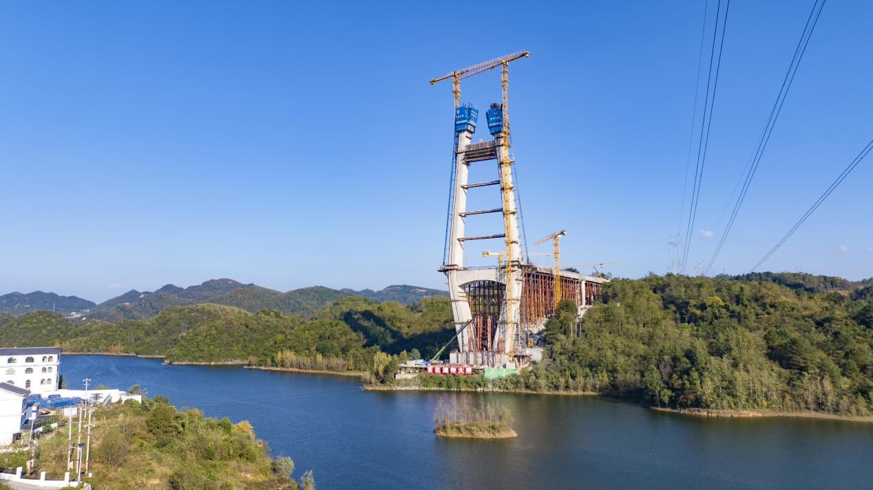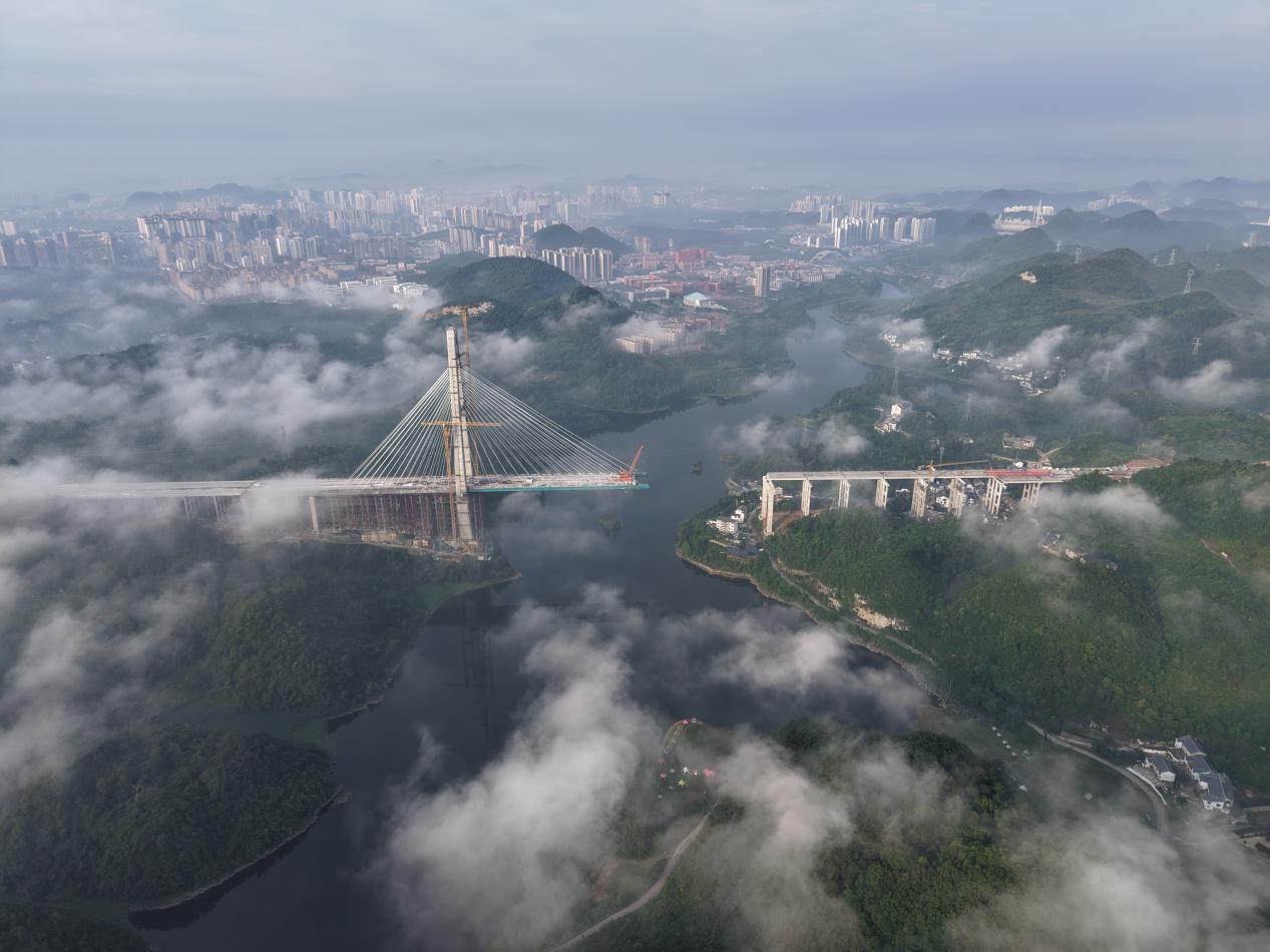 2025年5月23日,百花湖大桥11号主塔封顶。