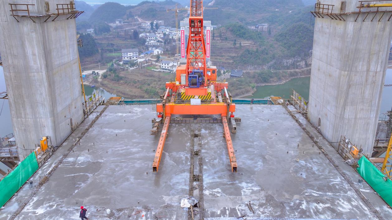 2024年6月18日,百花湖大桥11号主塔下横梁浇筑完成。