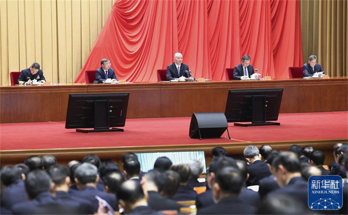 2月4日,学习贯彻习近平新时代中国特色社会主义思想主题教育总结会议在北京召开。中共中央政治局常委、中央学习贯彻习近平新时代中国特色社会主义思想主题教育领导小组组长蔡奇出席会议并讲话。新华社记者 庞兴雷 摄