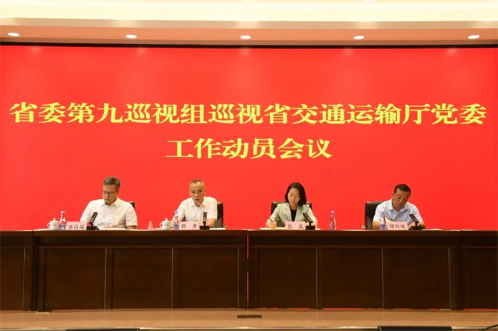 根据省委关于巡视工作的统一部署,7月9日上午,省委第九巡视组对省交通运输厅党委开展巡视工作动员会召开。会前,省委第九巡视组组长杨勇主持召开与省交通运输厅党委书记、厅长张胤的见面沟通会,并通报了本次巡视的主要任务及工作安排。在动员会上,省委第九巡视组副组长潘昌福传达了省委书记、省人大常委会主任徐麟在省委常委会会议上听取十三届省委第四轮巡视工作情况汇报时的讲话精神,省委第九巡视组副组长禄毅斌宣读了巡视通知,省委第九巡视组组长杨勇就即将开展的巡视工作总体要求、目标任务等方面作了动员讲话,省交通运输厅党委书记、厅长张胤主持会议并就配合做好巡视工作作了表态发言。