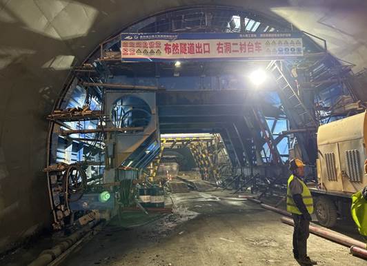 布然隧道位于新疆维吾尔自治区和静县巴伦台镇,进口位于包格丹郭楞村,出口位于乌拉斯台村,洞身采用分离式,左、右测设线间距25~35m,左线起讫桩号ZK531+060~ZK537+618,长6558m;右线起讫桩号YK531+062~YK537+612,长6550m,属特长隧道,最大埋深884m;斜井起讫桩号K0+070~K1+289.445,长1219.445m,最大埋深660m。二衬混凝土浇筑长度为12米,衬砌厚度为40厘米。为确保浇筑顺利完成,项目部按照首件工程验收制度要求,对施工工艺及各个环节严格把控,针对原材料进场、防水板铺设、二衬钢筋绑扎、模板安装等方面进行了认真检查验收。布然隧道为那巴十标项目控制性工程和重难点工程,隧道的二衬混凝土浇筑大大提高了洞口浅埋段的安全系数,为隧道后续安全、高效施工打下良好基础。目前,隧道施工、路基施工、桥涵施工已全面展开。