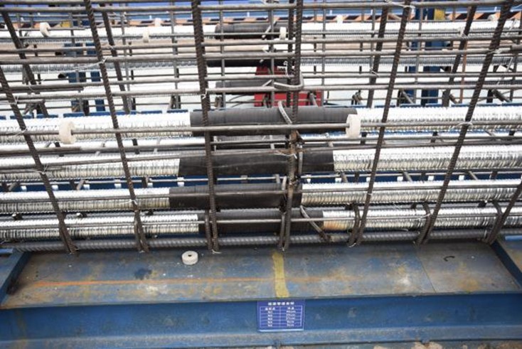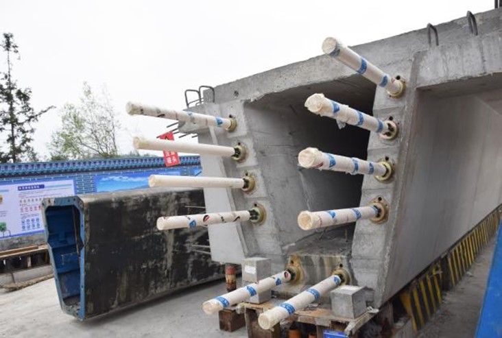 预制梁场主要采用的工艺有:液压式模板浇筑工艺、预制梁可移动式钢筋绑扎定位胎架施工工艺、支座调坡器调节梁板纵坡的施工工艺、装配式梁板伸缩缝后浇工艺、梁、板预应力管道热熔接头安装工艺、翼板梳子板防漏浆免凿毛止浆带工艺、端部凿毛角钢保护工艺、预应力端头先半封锚后全封锚工艺、桥梁预应力智能张拉及压浆工艺、护栏钢筋预埋工艺、智能张拉及压浆工艺、C02保护焊工艺、预制梁场自动喷淋养生工艺等,有效提升了T梁、箱梁预制整体质量的效果。