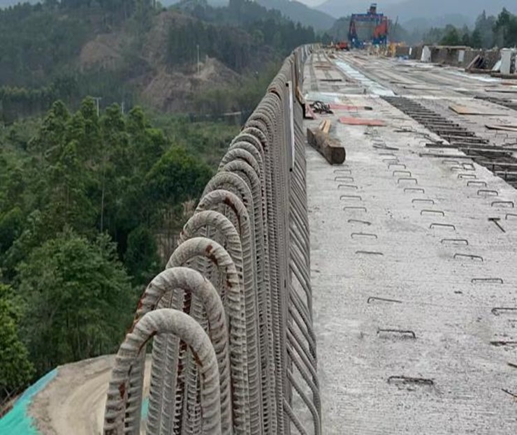 通过对桥梁防撞护栏钢筋整体式预埋和湿接缝防坠网安全防护,大大提升了桥面工人的施工安全系数,同时对护栏钢筋焊接质量有明显提升;并对焊接的搭接钢筋有明显的节约。