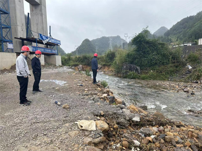 侯云(左一)在湖北十巫南项目检查汛期安全工作